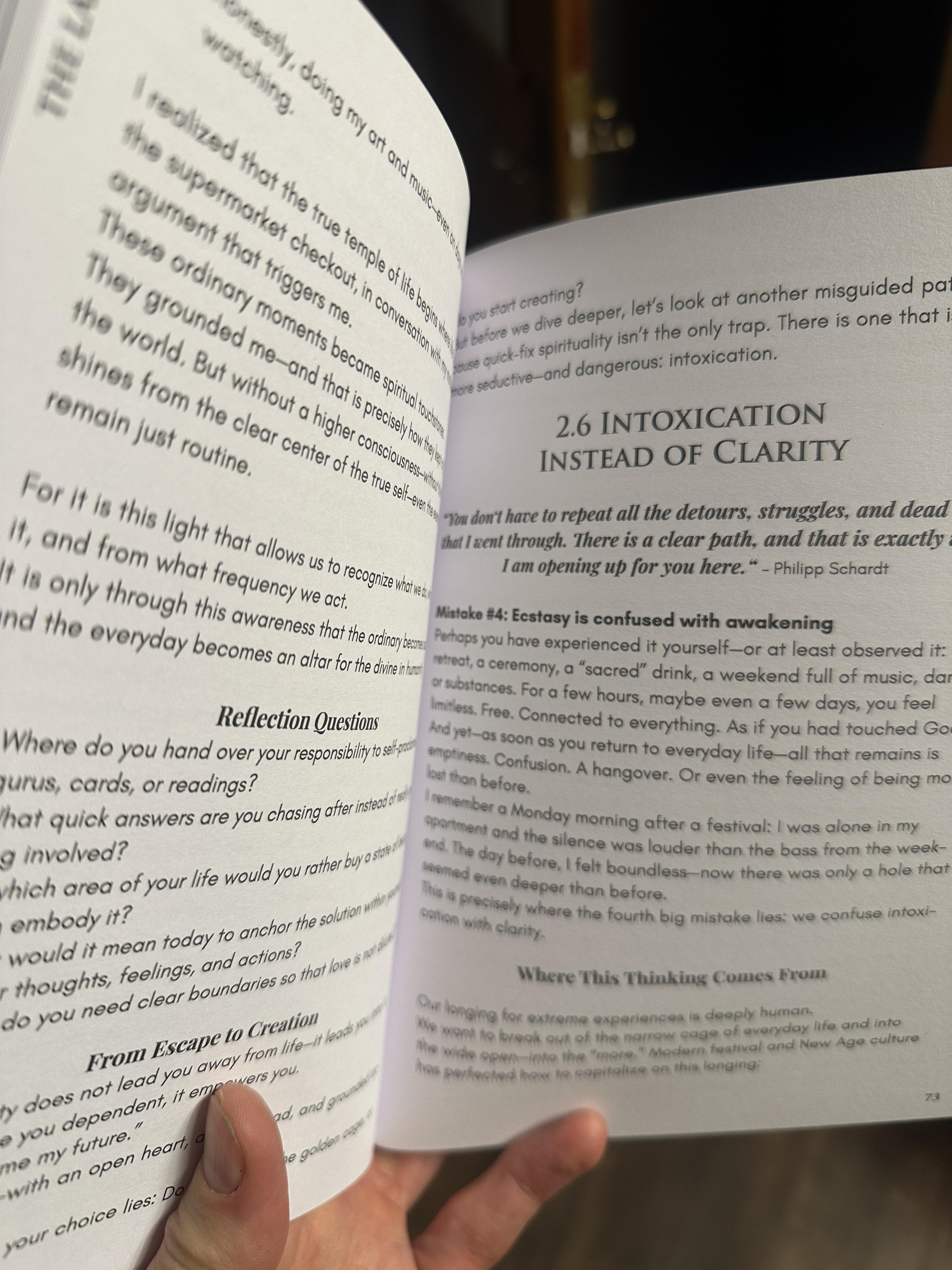 2. Decades of searching through every form of spirituality – shamanism, religion, New Age, self-optimization, psychedelic paths, coaching, rituals, and meditation. Paths that often touched but never really changed the root – and precisely because of this, brought the most valuable insights.